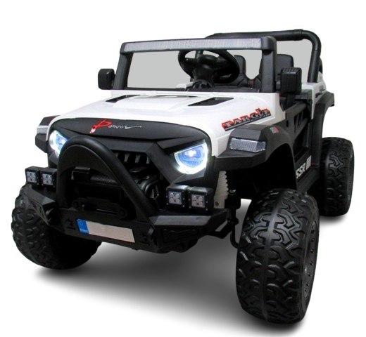 Wyposażenie pojazdu: pilot zdalnego sterowania 2.4G, funkcja wolnego startu, piankowe koła Eva, miękkie siedzisko z ekoskóry, nowoczesny panel muzyczny z melodyjkami, regulacja głośności, gniazdo MP3 i USB, wskaźnik naładowania baterii (voltomierz) na panelu muzycznym, Imitacje amortyzatorów na przedniej i tylnej osi, przełącznik przód-tył, przycisk włączania-wyłączania, włącznik/wyłącznik świateł, 1 akumulator litowo-jonowy12V4,5 Li-Ion ładowarka (wejście 220-230 V), pasy bezpieczeństwa, świecące światła przednie i górne, klakson i muzyka w kierownicy, otwierane drzwi (oboje), blokada drzwi, dźwięk zapalanego silnika, 2 lusterka boczne, 4 biegi (przód: wolny, szybki, najszybszy: tył: stała), zmiana prędkości następuje tylko z pilota; pedał gazu, Uwaga: górne lampy wymagają dodatkowych baterii paluszków (duże: AA)