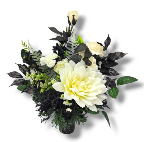 BIAŁO CZARNY BUKIET WKŁAD DO WAZONU KWIATY NA CMENTARZ GRÓB POMNIK