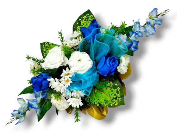 BIAŁO NIEBIESKI STROIK NA CMENTARZ KWIATY NA GRÓB POMNIK MISA Z OBCIĄŻENIEM