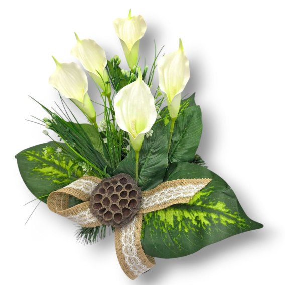 BUKIET WKŁAD DO WAZONU KWIATY NA CMENTARZ GRÓB POMNIK BIAŁE KALIE PREMIUM
