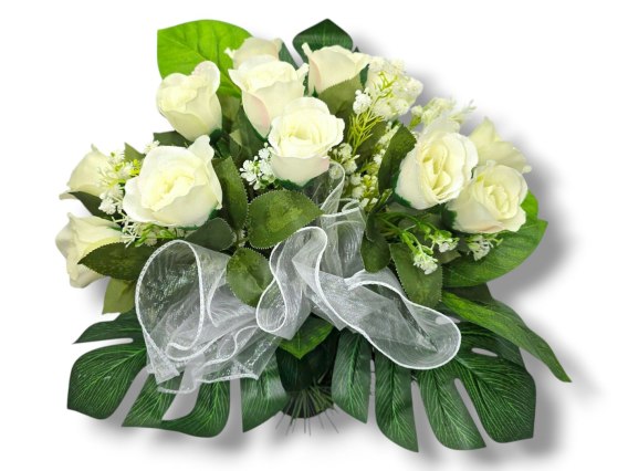 BUKIET WKŁAD DO WAZONU KWIATY NA CMENTARZ GRÓB POMNIK BIAŁE RÓŻE