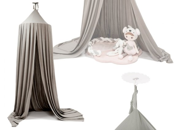Szary baldachim to piękna ozdoba pokoju. Delikatny kolor i zwiewna tkanina dodadzą wnętrzu uroku i przytulności. Kurtyna doskonale wkomponuje się w każdą aranżację, niezależnie od stylu, w jakim urządzony jest pokój. W zestawie znajdują się niezbędne elementy potrzebne do zamocowania baldachimu.