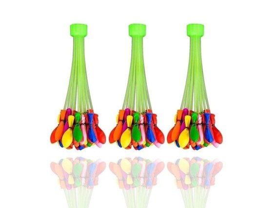 Zestaw zawiera 222 samozamykających się balonów oraz nakładkę na kran, dzięki czemu napełnianie balonów zajmie tylko chwilę. Wystarczy napełnić balony wodą, a gumka na balonie zaciśnie się samoczynnie zamykając szczelnie balon.