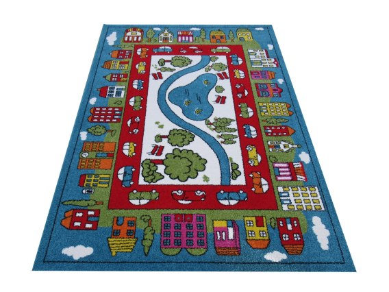 Dywan z kolekcji Mondo z motywem, który przedstawia miasteczko z całą pewnością pobudzi dziecięcą wyobraźnię. Wesoły, oryginalny wzór oraz piękne, intensywne kolory z pewnością odnajdą się w każdym pokoju dziecięcym. Dywan będzie towarzyszem codziennych zabaw, jednocześnie sprawiając, że staną się one dużo bezpieczniejsze.