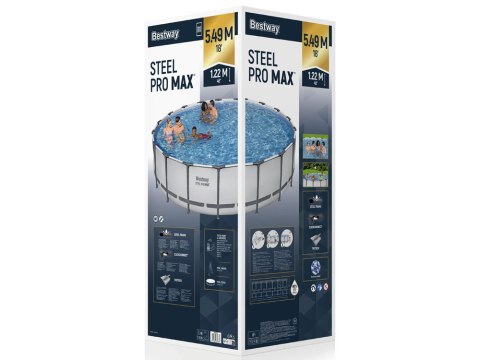 Ogrodowy basen stelażowy STEEL-PRO MAX™ Bestway o wymiarach 549 x 122cm i pojemności 23,062l zapewni komfortową ochłodę w upalny dzień. Prywatny ogrodowy basen jest na tyle obszerny, iż bez problemu będą mogły korzystać z niego dzieci wraz z rodzicami.
