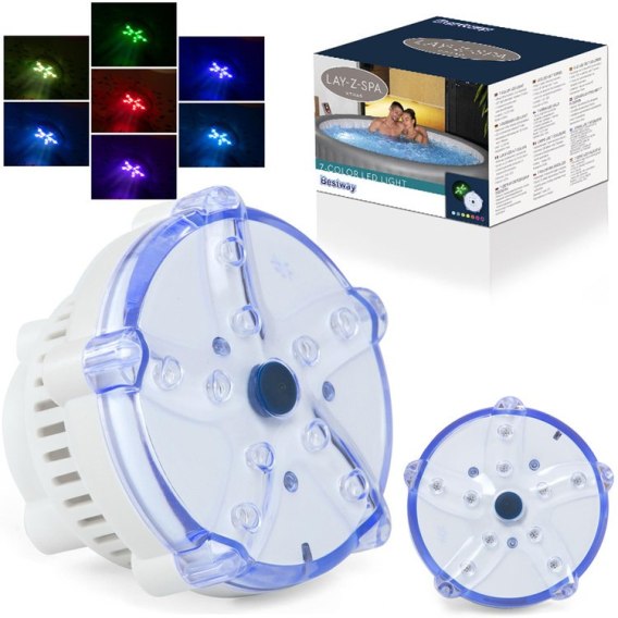 Lampka LED będzie wspaniałym dodatkiem, który urozmaici romantyczny wieczór w przydomowym Lay-Z-Spa. Jest prosta w obsłudze i posiada aż siedem trybów kolorystycznych. Kolory przełączane są za pomocą górnego przycisku. Lampka jest całkowicie bezpieczna i wodoszczelna, zasilana bateriami 3xAAA.