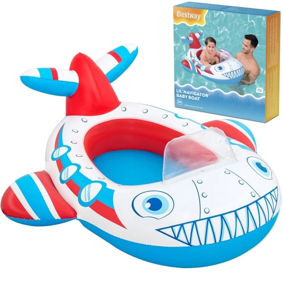 Ponton dla dzieci wzorem samolotu to idealne rozwiązanie dla osób chcących w bezpieczny sposób rozpocząć pierwszy kontakt z wodą swojego dziecka . Nadmuchiwana łódka dzięki lekkiej budowie zapewnia bezpieczeństwo i wygodę w wodzie. Dziecko może cieszyć się komfortową jazda po wodzie lub po prostu relaksować się. Charakterystyczną cechą łódki jest dmuchana przeźroczysta szyba znajdująca się z przodu dzięki której dziecko poczuje się jak prawdziwy pilot.
