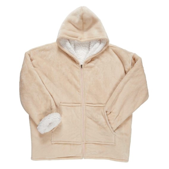 Długa bluza sherpa z suwakiem to idealne nakrycie na długie, zimowe wieczory. Bluza snuddie wyposażona została w kaptur ze ściągaczem oraz kieszenie z przodu. Bardzo miły i ciepły w dotyku materiał gwarantuje długie komfortowe wieczory filmowe. Prać w temp max 30 stopni. Nie prasować. Gramatura tkaniny 385g/m2 tkanina 100% poliester