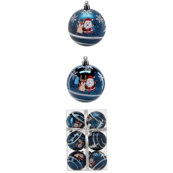 Bombki na choinkę NIEBIESKIE 8cm kpl 6szt MIKOŁAJ, RENIFER