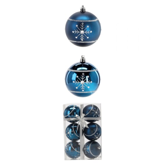 Bombki na choinkę NIEBIESKIE 8cm kpl 6szt ŚNIEŻYNKA