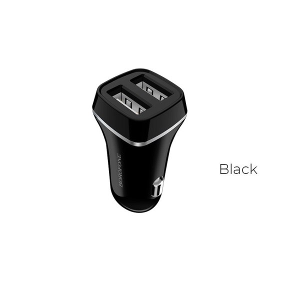 Borofone - ładowarka samochodowa 2x USB, czarny