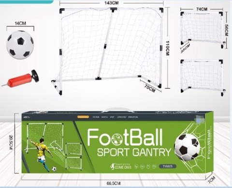 Duża bramka ma wymiary 143 cm x 110 cm x 70 cm, natomiast jedna mniejsza 74 cm x 55 cm x 35 cm.
