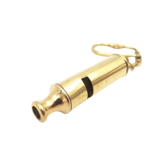 Brelok mosiężny Gwizdek sprawi, że zostaniesz usłyszany. Sprawdzi się jako gwizdek sędziowski w spontanicznym meczu piłkarskim, gwizdek do szkolenia zwierząt lub gwizdek awaryjny w kryzysowej sytuacji. Długość: 6,5 cm