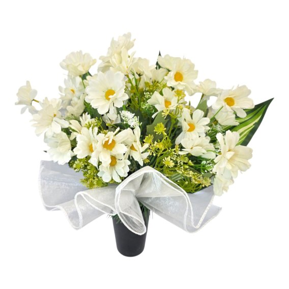 Bukiet flakon stroik na cmentarz sztuczne kwiaty kompozycja kwiatowa stokrotki margaretki