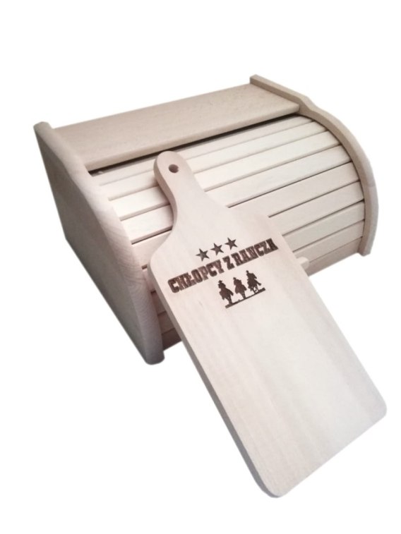 Chlebak drewniany mały naturalny Chlebak wykonany z drewna bukowego w kolorze naturalnym. Produkt posiada certyfikat PZH . Wymiary : długość: 32 cm - szerokość: 25 cm - wysokość: 16 cm Do każdego chlebaka dodajemy drewnianą deskę do krojenia o wymiarach 14 cm x 30 cm