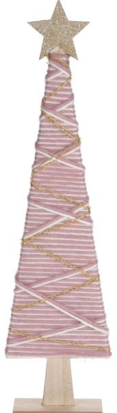 Choinka drewniana z brokatową gwiazdą 46 cm jasny róż Świąteczne dekoracje stworzą w naszym domach wyjątkowy klimat, który sprawi że Święta Bożego Narodzenia nabiorą prawdziwie magicznego charakteru. Sztuczna drewniana choinka pokryta nicią nada przytulnego wyglądu, a dopełniają efekt ten dopełnia brokatowa gwiazdka. Specyfikacja: Wymiary: 46 x 12 x 5 cm, Kolor: jasny róż, złoty Materiał: drewno, nić poliestrowa