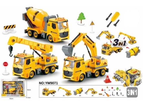 Ciężarówka 3w1, Samochód Ciężarowy Do Rozkręcania, Betoniarka, Koparka, Dźwig Z Hakiem