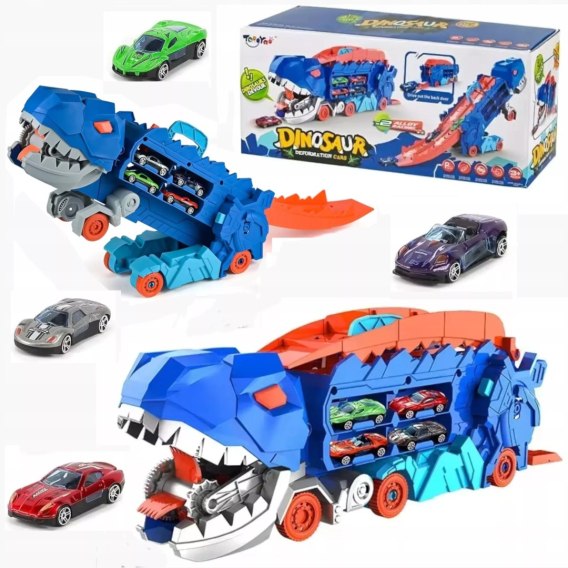 - ciężarówka w kształcie T-rexa z otwieraną naczepą