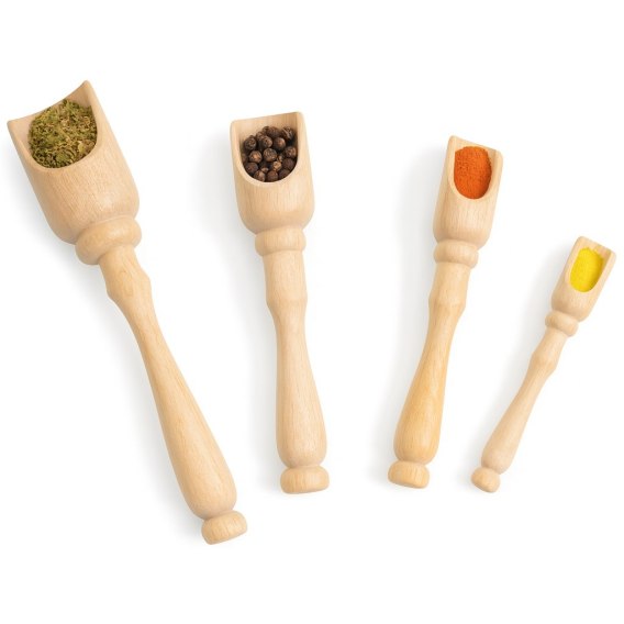 Zestaw drewnianych szufelek kuchennych do przypraw - 4 sztuki
