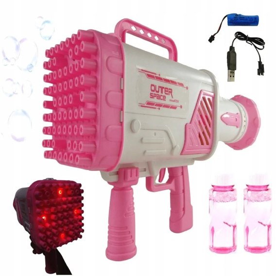 DUŻY PISTOLET DO BANIEK MYDLANYCH PŁYN BAŃKI PŁYN 118 ml bańki światła dźwięk wentylatora 64 DYSZE