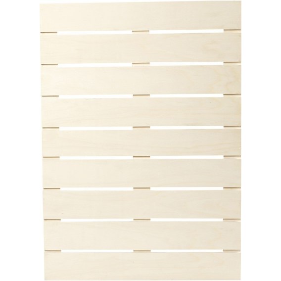 Panel z listew z jasnego drewna, mocowany za pomocą wsporników, odpowiedni zarówno do zawieszenia pionowego jak i poziomego. Wymiary: 45x63 x 1,1 cm, sklejka. W opakowaniu znajduje się 1 sztuka. Nieodpowiednie dla dzieci w wieku poniżej 36 miesięcy.