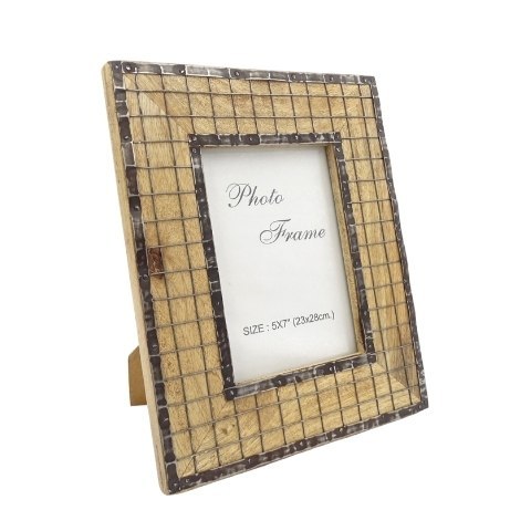 Ramka z naturalnego drewna mango. Inkrustacja - metalowa kratownica.