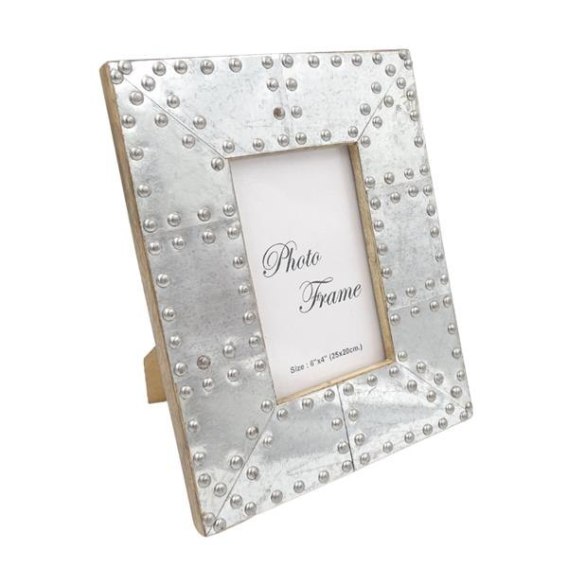Ramka wykonana z drewna mangowego, inkrustowana metalem. Zdobienia metalowe. Format zdjęcia 15x10cm. Wymiary zewnętrzne: 25 x 20 cm. Wymiary wewnętrzne: 14 x 9 cm.