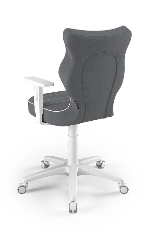 Tworzymy tylko zdrowe krzesła! Liczne badania potwierdzają, że około 70% dzieci w wieku szkolnym posiada błędy lub wady postawy. Dobre Krzesła dostosowane są do wzrostu użytkownika i występują w 4 rozmiarach. Pamiętaj aby odpowiednio dopasować rozmiar krzesła do wzrostu dziecka. Czym są Dobre Krzesła? Dobre Krzesła to linia produktów ergonomicznych, które dzięki posiadanym parametrom oraz najwyższym standardom w zakresie ergonomii sprzyjają wyrabianiu prawidłowej pozycji siedzącej, a w konsekwencji wspomagają prawidłowy rozwój kręgosłupa. Krzesła poprzez wyprofilowanie lordozy lędźwiowej wymuszają obciążenie guzów kulszowych, stymulują prawidłową pozycję miednicy, która jest podstawą właściwego ustawienia górnych segmentów kręgosłupa. Dobre Krzesła zostały zaprojektowane zgodnie z Normą PN-EN 1729 dzięki czemu posiadają rozmiary dedykowane do wzrostu użytkownika. Sprawia to, że w przypadku najmłodszych krzesła mogą „rosnąć" razem z nimi. Krzesło młodzieżowe Duo To linia Dobrych Krzeseł posiadająca parametry ergonomiczne, które odpowiadają za zachowanie prawidłowej postawy siedzącej. Duo występuje w sześciu rodzajach tkanin i trzech kolorach komponentów - czarnym, białym oraz szarym. Wykończenie krzesła oraz szeroki wybór koloru tapicerki sprawia, że model pasuje do każdego wnętrza. Duo dostępne w rozmiarze 5 i 6 posiada regulowane podłokietniki umożliwiające wsunięcie krzesła pod blat biurka. Podstawę krzesła wykonano z tworzywa sztucznego oraz włókna szklanego. W zestawie znajdują się kółka miękkie umożliwiające ruch krzesła zarówno po powierzchniach twardych jak i wykładzinach. Produkt zaprojektowany i wyprodukowany w Polsce. Specyfikacja tkaniny Jasmine Kolorystyka: czarny, szary, niebieski, różowy, ciemny szary Kolor przeszyć: biały Kolor lamówki: biały Gramatura: 250 g/m2 Skład: 100% poliester Ścieralność: 100 000 cykli Tkanina przeszła test zapalności zgodnie z Normą EN1021-1 Jak dobrać odpowiedni rozmiar krzesła do wzrostu dziecka? Kręgosłup jako główny stabilizator ciała wymaga wsparcia w okresie dojrzewania, kiedy rośniemy i się rozwijamy. Mając 130 cm wzrostu poszczególne odcinki kręgosłupa znajdują się na innej wysokości niż w momencie kiedy osiągniemy 170 cm wzrostu. Z punktu ergonomii jest to niezwykle ważne, aby krzesło było odpowiednio dopasowane do wzrostu dziecka czy dorosłego. Rozmiary Dobrych Krzeseł są zaprojektowane w taki sposób, aby na każdym etapie rozwoju wspierały kręgosłup poprzez zachowanie krzywizn i uwypukleń , które odzwierciadlają naturalne ułożenie kręgosłupa. Certyfikaty i atesty Tworzenie nowoczesnych przestrzeni i wnętrz to tworzenie przestrzeni bezpiecznych. W tym celu konieczne jest zastosowanie wyposażenia, które nie tylko nie zagraża zdrowiu użytkowników, lecz aktywnie bądź pasywnie wspomaga funkcje ochronne. Produkty przedstawione w naszej ofercie są zaprojektowane zgodnie z powyższą ideą. Produkt posiada certyfikat zgodności z Normą PN-EN 1335-1:2004 oraz PN-EN 1335-2:2009. Ergonomiczne siedzisko wykonane z tworzywa sztucznego Podłokietniki Podłokietniki regulowane wykonane z tworzywa sztucznego, twarde Mechanizm Blacha siedziska z dźwignią prostą wykonana ze stali Kolumna Podnośnik gazowy wykonany ze stali i tworzywa sztucznego Zgodność z Normą EN 1335 Osłonka Teleskopowa osłonka na podnośnik gazowy wykonana z tworzywa sztucznego Baza Podstawa pięcioramienna wykonana z tworzywa sztucznego i włókna szklanego Kółka Kółka miękkie wykonane z tworzywa sztucznego, średnica 50 mm, średnica trzpienia fi 11