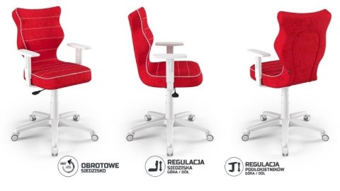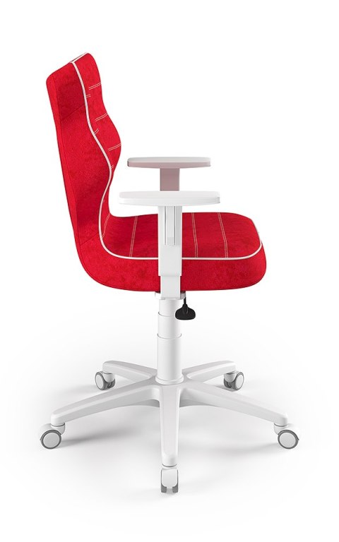 Tworzymy tylko zdrowe krzesła! Liczne badania potwierdzają, że około 70% dzieci w wieku szkolnym posiada błędy lub wady postawy. Dobre Krzesła dostosowane są do wzrostu użytkownika i występują w 4 rozmiarach. Pamiętaj aby odpowiednio dopasować rozmiar krzesła do wzrostu dziecka. Czym są Dobre Krzesła? Dobre Krzesła to linia produktów ergonomicznych, które dzięki posiadanym parametrom oraz najwyższym standardom w zakresie ergonomii sprzyjają wyrabianiu prawidłowej pozycji siedzącej, a w konsekwencji wspomagają prawidłowy rozwój kręgosłupa. Krzesła poprzez wyprofilowanie lordozy lędźwiowej wymuszają obciążenie guzów kulszowych, stymulują prawidłową pozycję miednicy, która jest podstawą właściwego ustawienia górnych segmentów kręgosłupa. Dobre Krzesła zostały zaprojektowane zgodnie z Normą PN-EN 1729 dzięki czemu posiadają rozmiary dedykowane do wzrostu użytkownika. Sprawia to, że w przypadku najmłodszych krzesła mogą „rosnąć" razem z nimi. Krzesło młodzieżowe Duo To linia Dobrych Krzeseł posiadająca parametry ergonomiczne, które odpowiadają za zachowanie prawidłowej postawy siedzącej. Duo występuje w sześciu rodzajach tkanin i trzech kolorach komponentów - czarnym, białym oraz szarym. Wykończenie krzesła oraz szeroki wybór koloru tapicerki sprawia, że model pasuje do każdego wnętrza. Duo dostępne w rozmiarze 5 i 6 posiada regulowane podłokietniki umożliwiające wsunięcie krzesła pod blat biurka. Podstawę krzesła wykonano z tworzywa sztucznego oraz włókna szklanego. W zestawie znajdują się kółka miękkie umożliwiające ruch krzesła zarówno po powierzchniach twardych jak i wykładzinach. Produkt zaprojektowany i wyprodukowany w Polsce. Specyfikacja tkaniny Visto Kolorystyka: czarny, szary, zielony, niebieski, fioletowy, różowy, czerwony, beżowy Kolor przeszyć: biały Kolor lamówki: biały Gramatura: 255 g/m2 Skład: 100% poliester Ścieralność: 45 000 cykli Jak dobrać odpowiedni rozmiar krzesła do wzrostu dziecka? Kręgosłup jako główny stabilizator ciała wymaga wsparcia w okresie dojrzewania, kiedy rośniemy i się rozwijamy. Mając 130 cm wzrostu poszczególne odcinki kręgosłupa znajdują się na innej wysokości niż w momencie kiedy osiągniemy 170 cm wzrostu. Z punktu ergonomii jest to niezwykle ważne, aby krzesło było odpowiednio dopasowane do wzrostu dziecka czy dorosłego. Rozmiary Dobrych Krzeseł są zaprojektowane w taki sposób, aby na każdym etapie rozwoju wspierały kręgosłup poprzez zachowanie krzywizn i uwypukleń , które odzwierciadlają naturalne ułożenie kręgosłupa. Certyfikaty i atesty Tworzenie nowoczesnych przestrzeni i wnętrz to tworzenie przestrzeni bezpiecznych. W tym celu konieczne jest zastosowanie wyposażenia, które nie tylko nie zagraża zdrowiu użytkowników, lecz aktywnie bądź pasywnie wspomaga funkcje ochronne. Produkty przedstawione w naszej ofercie są zaprojektowane zgodnie z powyższą ideą. Produkt posiada certyfikat zgodności z Normą PN-EN 1335-1:2004 oraz PN-EN 1335-2:2009. Ergonomiczne siedzisko wykonane z tworzywa sztucznego Podłokietniki Podłokietniki regulowane wykonane z tworzywa sztucznego, twarde Mechanizm Blacha siedziska z dźwignią prostą wykonana ze stali Kolumna Podnośnik gazowy wykonany ze stali i tworzywa sztucznego Zgodność z Normą EN 1335 Osłonka Teleskopowa osłonka na podnośnik gazowy wykonana z tworzywa sztucznego Baza Podstawa pięcioramienna wykonana z tworzywa sztucznego i włókna szklanego Kółka Kółka miękkie wykonane z tworzywa sztucznego, średnica 50 mm, średnica trzpienia fi 11
