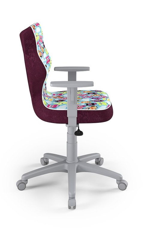 Tworzymy tylko zdrowe krzesła! Liczne badania potwierdzają, że około 70% dzieci w wieku szkolnym posiada błędy lub wady postawy. Dobre Krzesła dostosowane są do wzrostu użytkownika i występują w 4 rozmiarach. Pamiętaj aby odpowiednio dopasować rozmiar krzesła do wzrostu dziecka. Czym są Dobre Krzesła? Dobre Krzesła to linia produktów ergonomicznych, które dzięki posiadanym parametrom oraz najwyższym standardom w zakresie ergonomii sprzyjają wyrabianiu prawidłowej pozycji siedzącej, a w konsekwencji wspomagają prawidłowy rozwój kręgosłupa. Krzesła poprzez wyprofilowanie lordozy lędźwiowej wymuszają obciążenie guzów kulszowych, stymulują prawidłową pozycję miednicy, która jest podstawą właściwego ustawienia górnych segmentów kręgosłupa. Dobre Krzesła zostały zaprojektowane zgodnie z Normą PN-EN 1729 dzięki czemu posiadają rozmiary dedykowane do wzrostu użytkownika. Sprawia to, że w przypadku najmłodszych krzesła mogą „rosnąć" razem z nimi. Krzesło młodzieżowe Duo To linia Dobrych Krzeseł posiadająca parametry ergonomiczne, które odpowiadają za zachowanie prawidłowej postawy siedzącej. Duo występuje w sześciu rodzajach tkanin i trzech kolorach komponentów - czarnym, białym oraz szarym. Wykończenie krzesła oraz szeroki wybór koloru tapicerki sprawia, że model pasuje do każdego wnętrza. Duo dostępne w rozmiarze 5 i 6 posiada regulowane podłokietniki umożliwiające wsunięcie krzesła pod blat biurka. Podstawę krzesła wykonano z tworzywa sztucznego oraz włókna szklanego. W zestawie znajdują się kółka miękkie umożliwiające ruch krzesła zarówno po powierzchniach twardych jak i wykładzinach. Produkt zaprojektowany i wyprodukowany w Polsce. Specyfikacja tkaniny Storia Motywy: zwierzaki, piłki, dinozaury, motylki, sówki, moro Kolor lamówki: biały Gramatura: 90 g/m2 Skład: 100% poliester Ścieralność: 25 000 cykli Jak dobrać odpowiedni rozmiar krzesła do wzrostu dziecka? Kręgosłup jako główny stabilizator ciała wymaga wsparcia w okresie dojrzewania, kiedy rośniemy i się rozwijamy. Mając 130 cm wzrostu poszczególne odcinki kręgosłupa znajdują się na innej wysokości niż w momencie kiedy osiągniemy 170 cm wzrostu. Z punktu ergonomii jest to niezwykle ważne, aby krzesło było odpowiednio dopasowane do wzrostu dziecka czy dorosłego. Rozmiary Dobrych Krzeseł są zaprojektowane w taki sposób, aby na każdym etapie rozwoju wspierały kręgosłup poprzez zachowanie krzywizn i uwypukleń , które odzwierciadlają naturalne ułożenie kręgosłupa. Certyfikaty i atesty Tworzenie nowoczesnych przestrzeni i wnętrz to tworzenie przestrzeni bezpiecznych. W tym celu konieczne jest zastosowanie wyposażenia, które nie tylko nie zagraża zdrowiu użytkowników, lecz aktywnie bądź pasywnie wspomaga funkcje ochronne. Produkty przedstawione w naszej ofercie są zaprojektowane zgodnie z powyższą ideą. Produkt posiada certyfikat zgodności z Normą PN-EN 1335-1:2004 oraz PN-EN 1335-2:2009. Ergonomiczne siedzisko wykonane z tworzywa sztucznego Podłokietniki Podłokietniki regulowane wykonane z tworzywa sztucznego, twarde Mechanizm Blacha siedziska z dźwignią prostą wykonana ze stali Kolumna Podnośnik gazowy wykonany ze stali i tworzywa sztucznego Zgodność z Normą EN 1335 Osłonka Teleskopowa osłonka na podnośnik gazowy wykonana z tworzywa sztucznego Baza Podstawa pięcioramienna wykonana z tworzywa sztucznego i włókna szklanego Kółka Kółka miękkie wykonane z tworzywa sztucznego, średnica 50 mm, średnica trzpienia fi 11