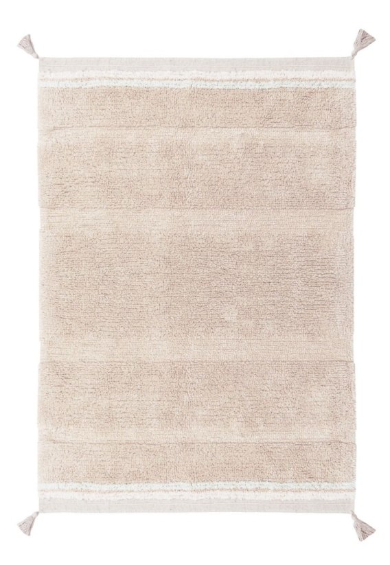 Połącz go z różnymi elementami z naszej kolekcji Fantasy Garden, aby uzyskać tematyczny wystrój pokoju dziecięcego lub użyj go samodzielnie w pozostałej części domu, ponieważ dzięki delikatnym, neutralnym kolorom łatwo wkomponuje się w każdą przestrzeń. Ten bawełniany dywan do prania w pralce jest dostępny w trzech wersjach kolorystycznych, od naturalnej beżowej niefarbowanej bawełny po rumiany róż i złocistożółty. Możesz wybierać spośród różnych rozmiarów i zobaczyć, który najlepiej pasuje do Twojej przestrzeni. Projekt ma jednobarwną powierzchnię z subtelnie zmieniającą się wysokością runa, która nadaje mu prążkowaną teksturę. Krawędzie wykończone są gołym płótnem z kontrastowymi haftowanymi paskami i frędzlami na każdym rogu.