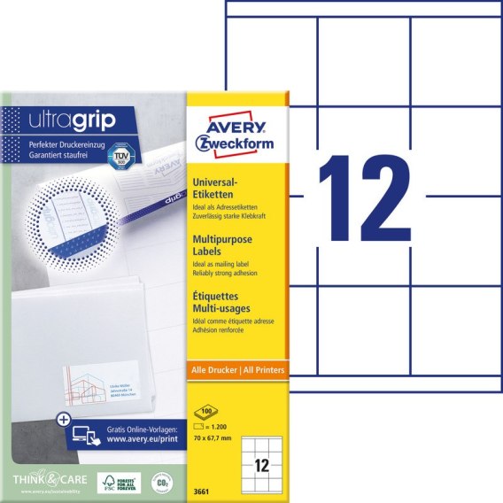 ETYKIETY A4 AVERY 70 X 67.7 MM BIAŁE (100)
