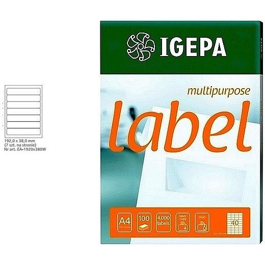 ETYKIETY A4 IGEPA 192 X 38.0 MM BIAŁE (100)