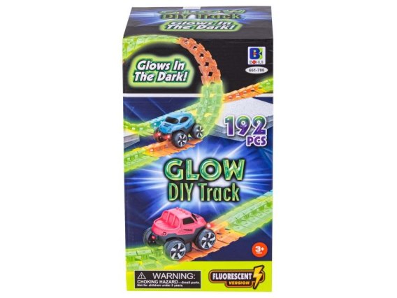 Elastyczny Tor Samochodowy, Wyścigowy 192 Elementy, Świecące Elementy Toru