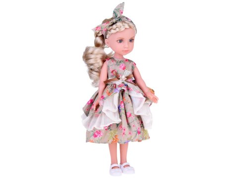 Ta urokliwa lalka jest doskonałym wyborem dla każdej małej miłośniczki mody! Z długimi, blond włosami zaplecionymi w elegancki warkocz, jest ubrana w szykowną, koktajlową sukienkę w kwiaty, ozdobioną falbanami. Stylową całość dopełnia kwiecista opaska na głowie oraz białe pantofelki na stopach. Całość prezentuje się po prostu uroczo!