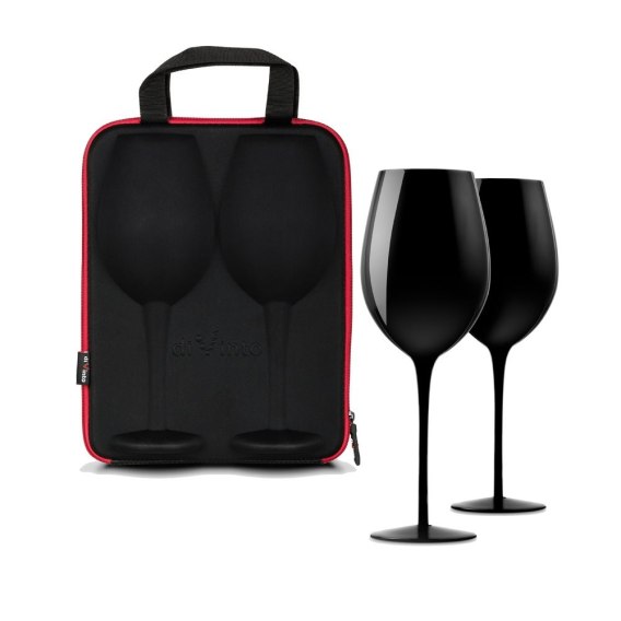 Eleganckie czarne etui diVinto wykonane jest z bardzo wytrzymałego materiału, który pozwala przewieźć szkło w idealnym stanie nawet na drugi koniec świata. W zestawie znajdują się też dwa kieliszki do wina, bo radością trzeba się dzielić! Dzięki nim będziecie mogli skupić się na przyjemnościach, zamiast na ciągłym dolewaniu alkoholu, który zawsze za szybko się kończy.
