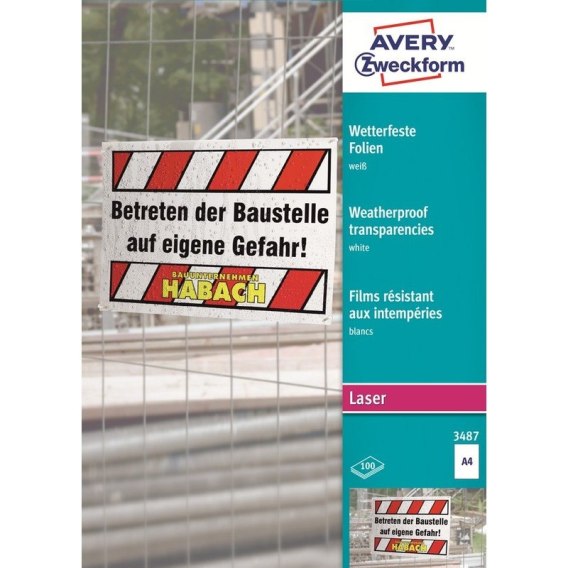 FOLIA AVERY ZWECKFORM 0.13 MM DO DRUKAREK LASEROWYCH I KSEROKOPIAREK 100 SZT.