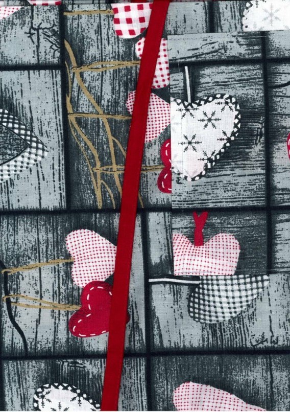 Fartuch kuchenny bawełniany 75x62 617E 825N serca szaro różowe