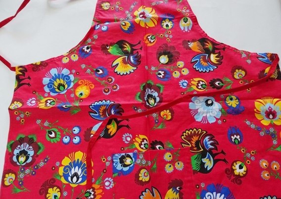 Fartuch kuchenny bawełniany 75x62 czerwony łowickie koguty