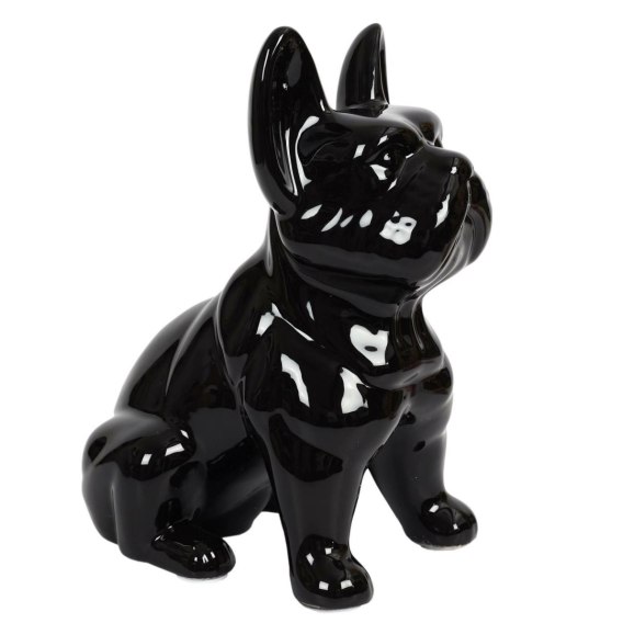 Figurka psa rasy Buldog to modny element dekoracji wnętrz. Czarna ceramiczna figurka przedstawia siedzącego psa z wesoło postawionymi uszami.fIGU Rka wykończona na wysoki połysk. Wymiary opakowania: 44x33x56 cm