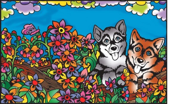 Teczka z gumką - kolorowanka z konturami pokrytymi welwetem. Rozmiar 36x26x1,8 cm. 12 flamastrów w zestawie.