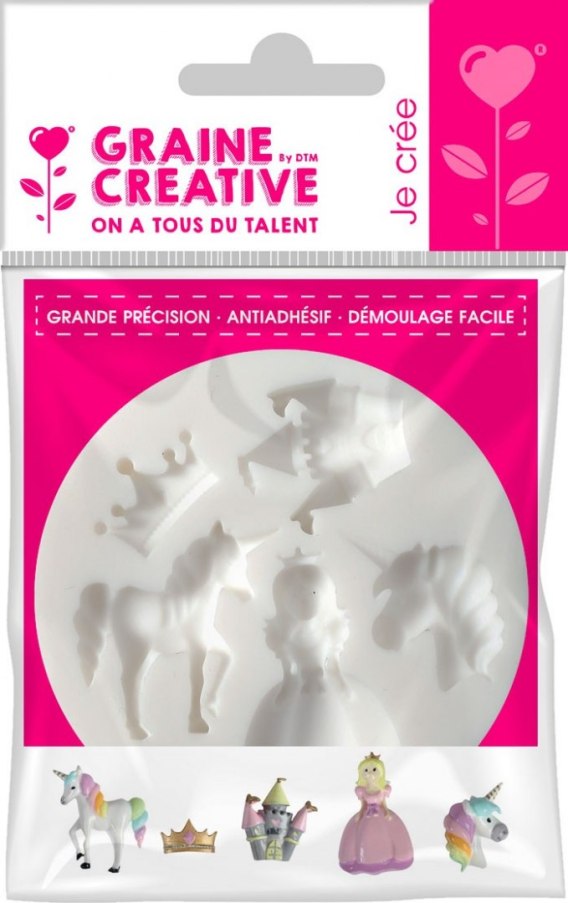Forma silikonowa do mas plastycznych. Nałóż masę do formy i jeśli trzeba usuń nadmiar. Pracując z masami samoutwardzalnymi pozostaw elementy w formie do całkowitego utwardzenia. Jeśli używamy modeliny można formę z zawartością wstawić do piekarnika, aby zapobiec uszkodzeniu elementów przy wyciąganiu. Można używać modeliny, gipsu, żywicy, mas do robienia kredek i gumek do ścierania itd. Nieodpowiednie dla dzieci w wieku poniżej 36 miesięcy. Wymiary formy około 7x7x1 cm.