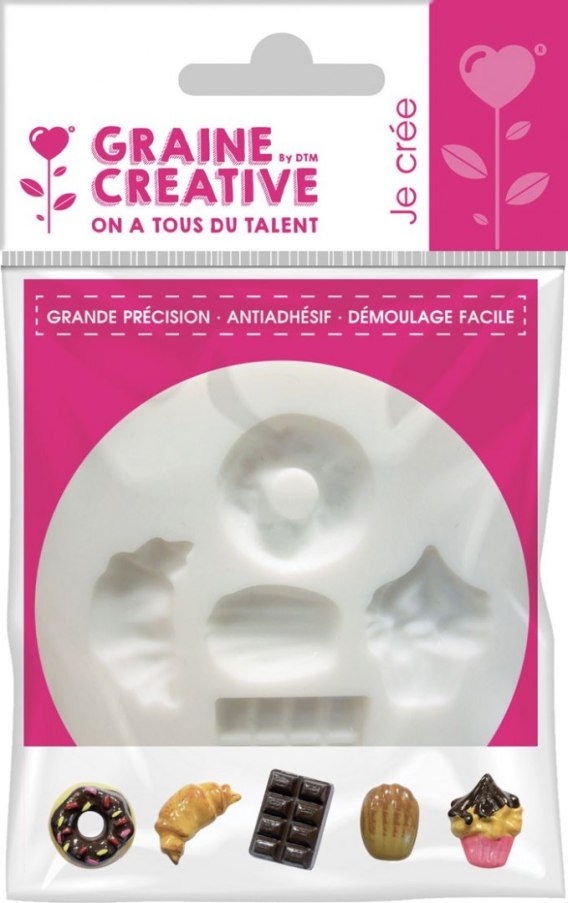 Forma silikonowa do mas plastycznych. Nałóż masę do formy i jeśli trzeba usuń nadmiar. Pracując z masami samoutwardzalnymi pozostaw elementy w formie do całkowitego utwardzenia. Jeśli używamy modeliny można formę z zawartością wstawić do piekarnika, aby zapobiec uszkodzeniu elementów przy wyciąganiu. Można używać modeliny, gipsu, żywicy, mas do robienia kredek i gumek do ścierania itd. Nieodpowiednie dla dzieci w wieku poniżej 36 miesięcy. Wymiary formy około 7x7x1 cm.