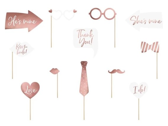 Gadżety do zdjęć na ślub, mix wzorów, w kolorze różowym i białym.