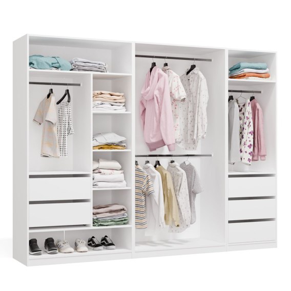 Garderoba Modułowa OPENO ZESTAW 260/200 BIAŁA Szuflady Drążki Półki Duża Do Sypialni