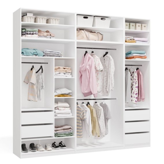 • Garderoba Modułowa OPENO ZESTAW 260/250 BIAŁA Szuflady Drążki Półki Duża Do Sypialni