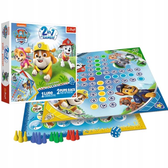 Po jednej stronie planszy jest znana przez wszystkich gra Chińczyk a po drugiej stronie gra Psi wyścig. Dodatkowym atutem, który przyciągnie uwagę najmłodszych jest to, że do zabawy zapraszają bohaterowie znanej i lubianej bajki Psi Patrol. Wspólne rozgrywki w towarzystwie Skye, Marshalla, Chase i Rubble zapewnią świetna rozrywkę całej rodzinie.