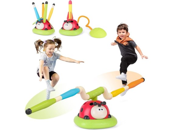 Gra Zręcznościowa 3w1 BIEDRONKA Wyrzutnia Rakiet Skakanka Rzut Do Celu Rzutki Skaczące Ramiona Interaktywna Zabawka Dla Dzieci
