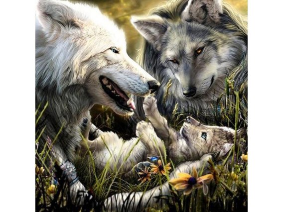 Haft Diamentowy, Obraz, Mozaika Diamentowa Diamond Painting, RODZINA WILKÓW Wilki 30x30cm
