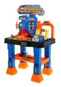 Wielofunkcyjny, interaktywny warsztat z funkcję dźwięku i światła to propozycja dla dzieci od 3-go roku życia. Zestaw został bogato wyposażony, może pełnić funkcję warsztatu samochodowego, myjni czy też stacji paliw. Na blacie warsztatu znajduje się podnośnik, aby mały mechanik mógł zajrzeć na podwozie auta i dokonać napraw. Tablica nad blatem posiada panel, na którym znajduje się przycisk, po naciśnięciu, na który mamy losową awarię, jaką należy naprawić w samochodzie. Kiedy naprawimy awarię, należy jeszcze raz nacisnąć przycisk, wówczas usłyszymy odgłosy naprawionej awarii i fanfary. Nad blatem znajduje się również dystrybutor z pistoletem do tankowania. Tankować możemy olej napędowy, benzynę bezołowiową Plus lub Premium. Aby zatankować, należy umieścić kartę w dystrybutorze, zapali się wówczas czerwona dioda sygnalizująca które paliwo tankujemy i usłyszymy odgłos tankowania. Po zakończeniu tankowania usłyszymy fanfary. Do zestawu dołączono wiele akcesoriów takich jak młotek, wiertarka zasilana bateriami, piła, śrubki, auto do tuningu itp. Zabawka zasilana jest bateriami typu 2 x 1,5 V AA - stolik, brak baterii w zestawie. Wkrętarka bateriami typu 2 x AA 1,5 V, brak baterii w zestawie. Rodzaje awarii do naprawy: - brak ciśnienia w oponach - dźwięk uciekającego powietrza, - wyciek oleju - dźwięk kapania, - awaria silnika - dźwięk silnika, który nie może odpalić, - rozładowany akumulator - dźwięk spadającego napięcia. Funkcje warsztatu: - 4 w 1 - stolik na narzędzia, warsztat samochodowy, myjnia, stacja paliw, - efekty dźwiękowe: uciekające powietrze, kapanie oleju, rozładowany akumulator, awaria silnika, fanfary po zakończonym zadaniu, odgłosy tankowania, - efekty świetlne - zapalają się światełka na panelu z awariami, zapala się dioda przy tankowaniu paliwa, - auto do tuningu, - obrotowa wiertarka. |